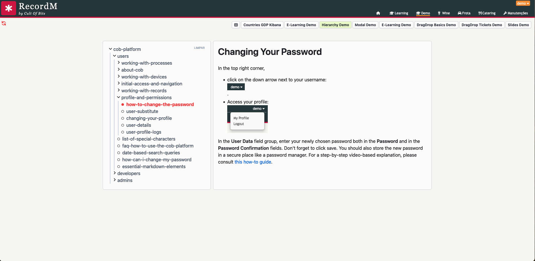 In the dashboard below, created using this site's documentation, a file-tree navigation is displayed on the left, while a simple text display is on the right. The navigation is managed by a Hierarchy component, aptly named for its ability to handle hierarchical data structures.